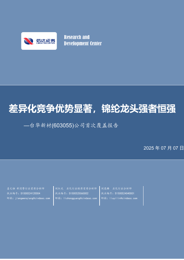 【信达证券】【20250707】台华新材(603055)公司首次覆盖报告:差异化竞争优势显著,锦纶龙头强者恒强-36页