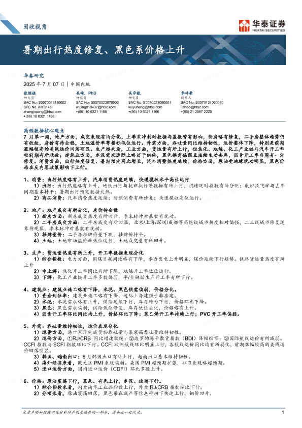 【华泰证券】【20250707】暑期出行热度修复、黑色系价格上升-14页