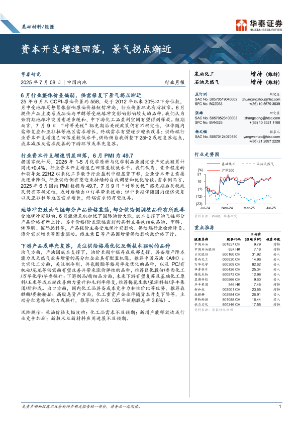 【华泰证券】【20250708】基础材料/能源行业月报:资本开支增速回落,景气拐点渐近-34页