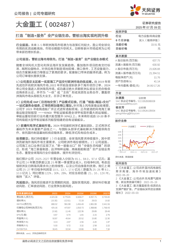 【天风证券】【20250709】大金重工(002487)打造“制造+服务”全产业链生态,管桩出海实现利润升维-10页