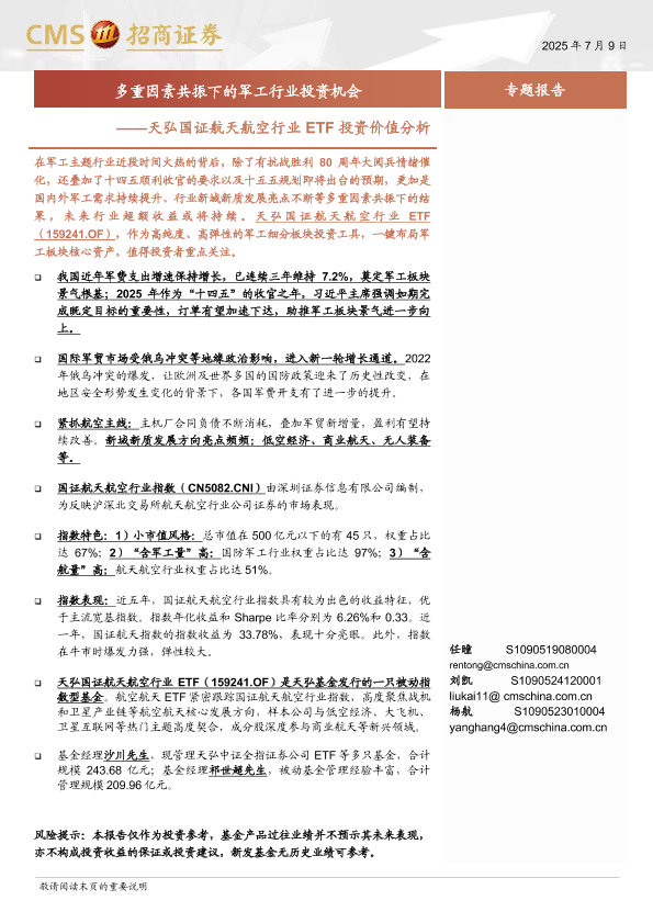【海通证券】【20250709】天弘国证航天航空行业ETF投资价值分析:多重因素共振下的军工行业投资机会-20页