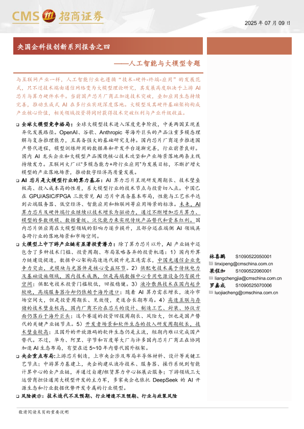【海通证券】【20250709】央国企科技创新系列报告之四:人工智能与大模型专题-30页