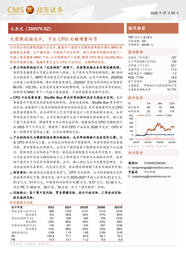 【海通证券】【20250705】太辰光(300570)光密集连接龙头,卡位CPO关键增量环节-31页