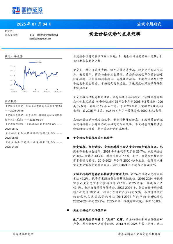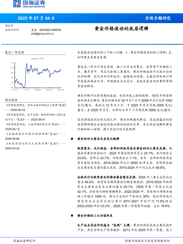 【国海证券】【20250704】宏观专题研究:黄金价格波动的底层逻辑-22页