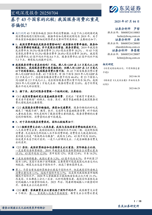 【东吴证券】【20250704】基于43个国家的比较,我国服务消费比重是否偏低?-18页