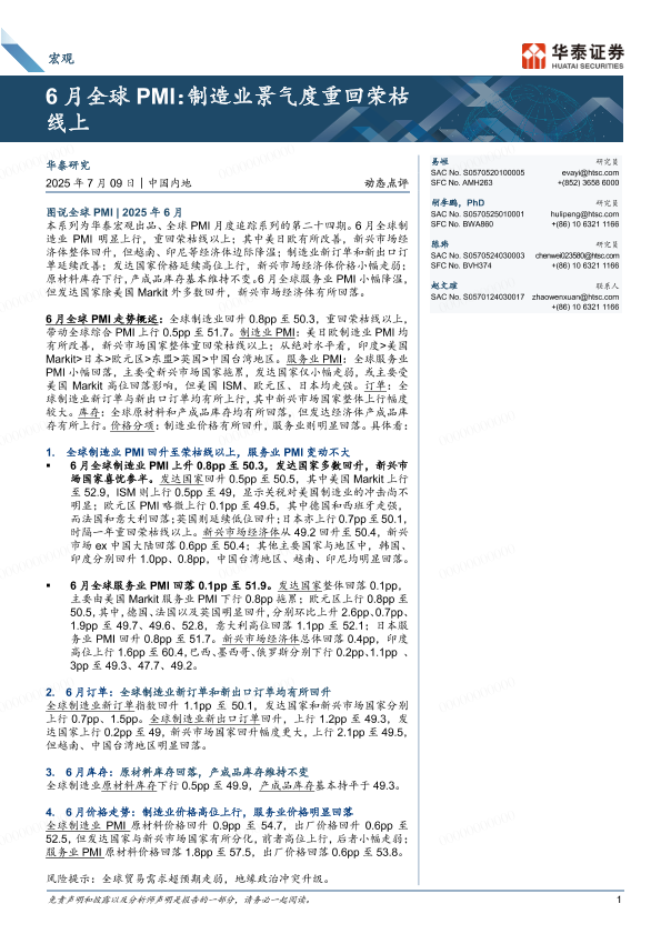 【华泰证券】【20250709】6月全球PMI:制造业景气度重回荣枯线上-18页