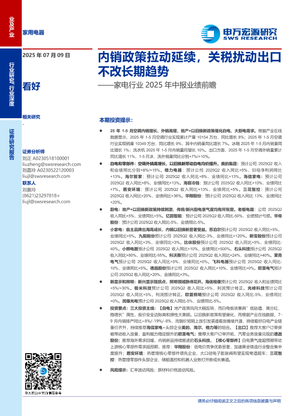 【申万宏源】【20250709】家电行业2025年中报业绩前瞻:内销政策拉动延续,关税扰动出口不改长期趋势-26页