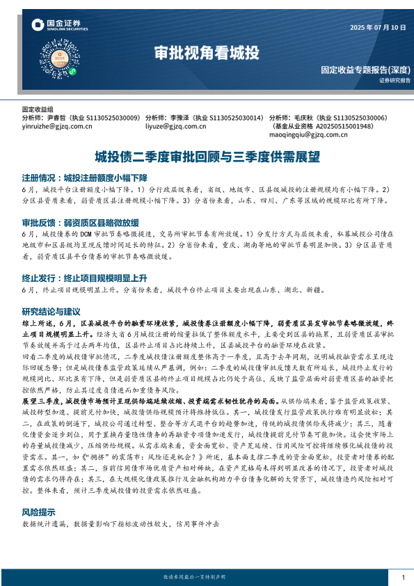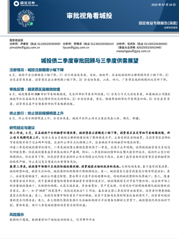【国金证券】【20250710】审批视角看城投:城投债二季度审批回顾与三季度供需展望-12页