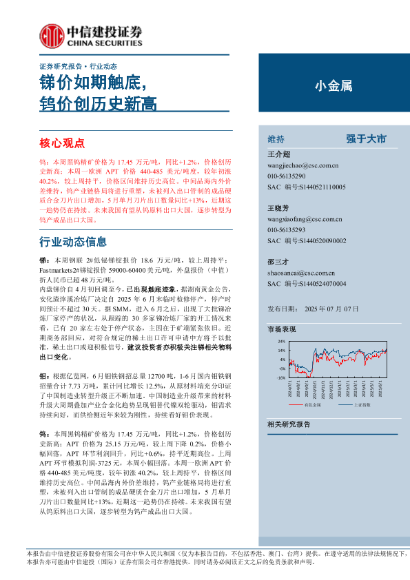 【中信建投证券】【20250707】小金属行业:锑价如期触底,钨价创历史新高-10页