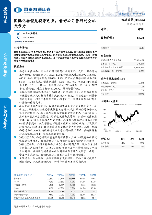 【国泰海通证券】【20250704】恒瑞医药国际化转型兑现期已至,看好公司管线的全球竞争力-17页