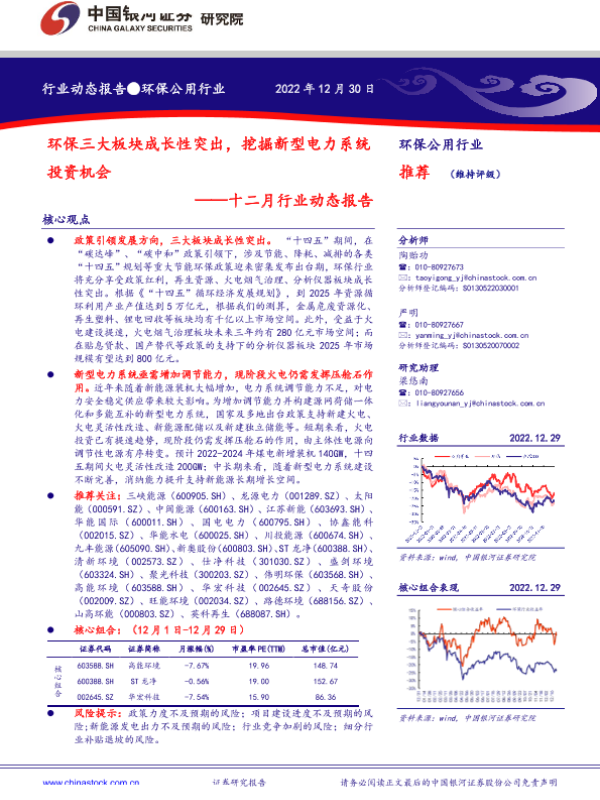 【银河证券】【20221230】环保公用行业十二月行业动态报告:环保三大板块成长性突出,挖掘新型电力系统投资机会-22页