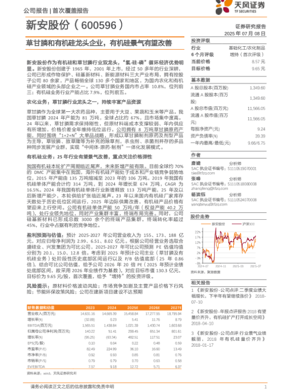 【天风证券】【20250708】新安股份(600596)草甘膦和有机硅龙头企业,有机硅景气有望改善-22页