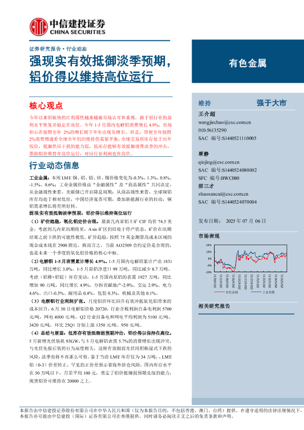 【中信建投证券】【20250706】强现实有效抵御淡季预期,铝价得以维持高位运行-13页