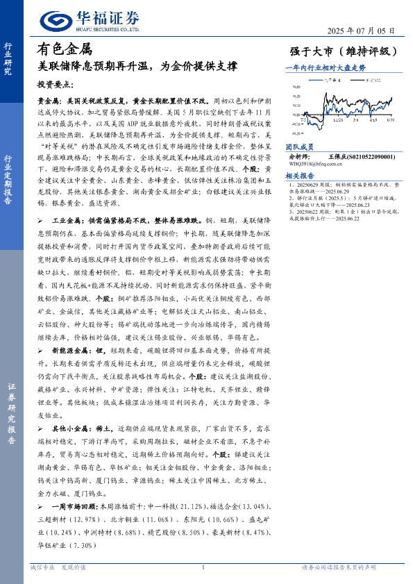 【华福证券】【20250705】美联储降息预期再升温,为金价提供支撑-17页