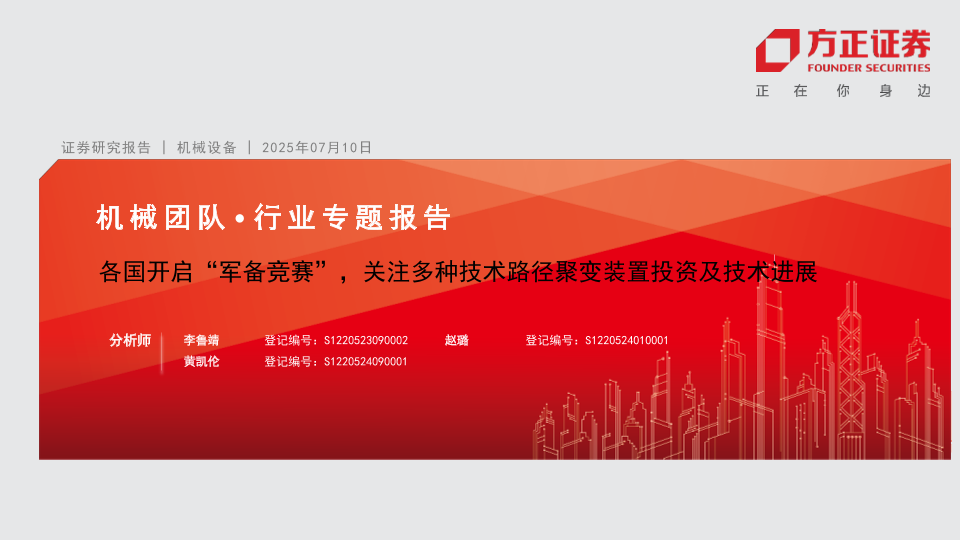 【方正证券】【20250710】机械设备行业专题报告:各国开启“军备竞赛”,关注多种技术路径聚变装置投资及技术进展-17页