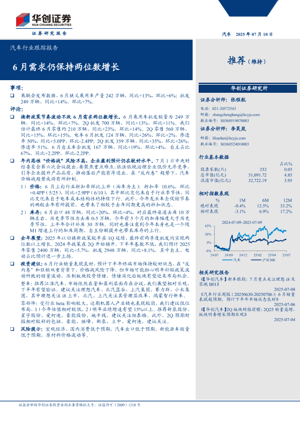 【华创证券】【20250710】汽车行业跟踪报告:6月需求仍保持两位数增长-13页