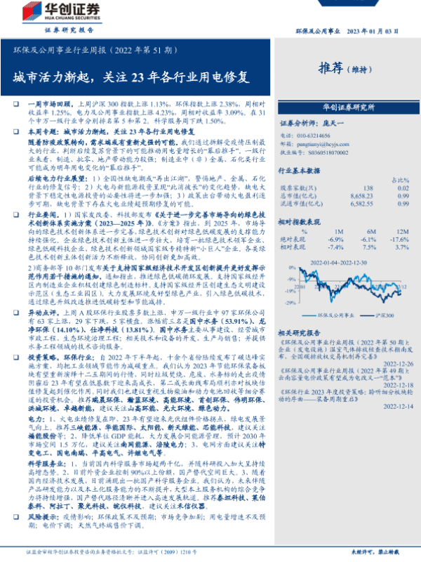 【华创证券】【20230103】环保及公用事业行业周报(2022年第51期):城市活力渐起,关注23年各行业用电修复-16页