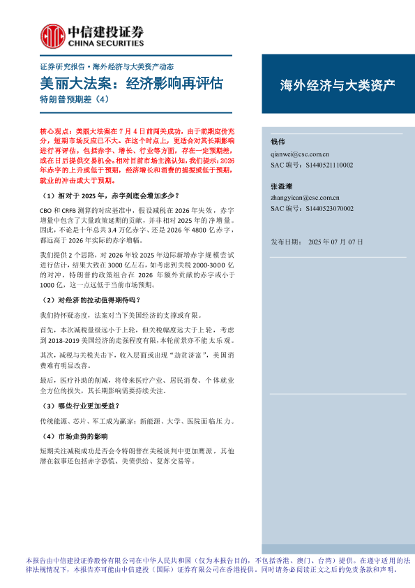 【中信建投证券】【20250707】特朗普预期差(4),美丽大法案:经济影响再评估-13页