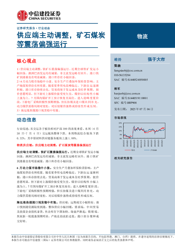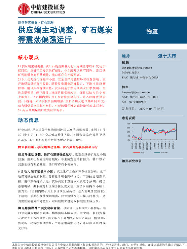 【中信建投证券】【20250706】物流行业:供应端主动调整,矿石煤炭等震荡偏强运行-14页