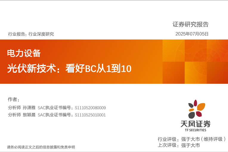 【天风证券】【20250705】电力设备行业深度研究:光伏新技术,看好BC从1到10-27页