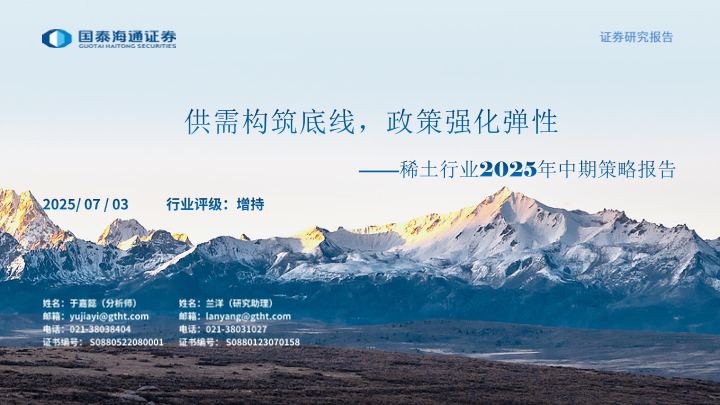 【国泰海通证券】【20250703】稀土行业2025年中期策略报告:供需构筑底线,政策强化弹性-39页