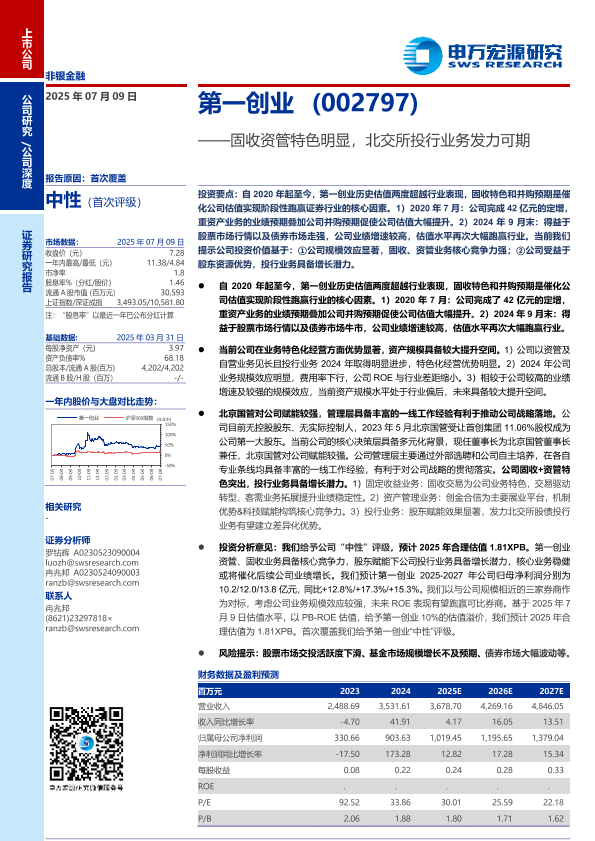 【申万宏源】【20250709】第一创业固收资管特色明显,北交所投行业务发力可期-22页