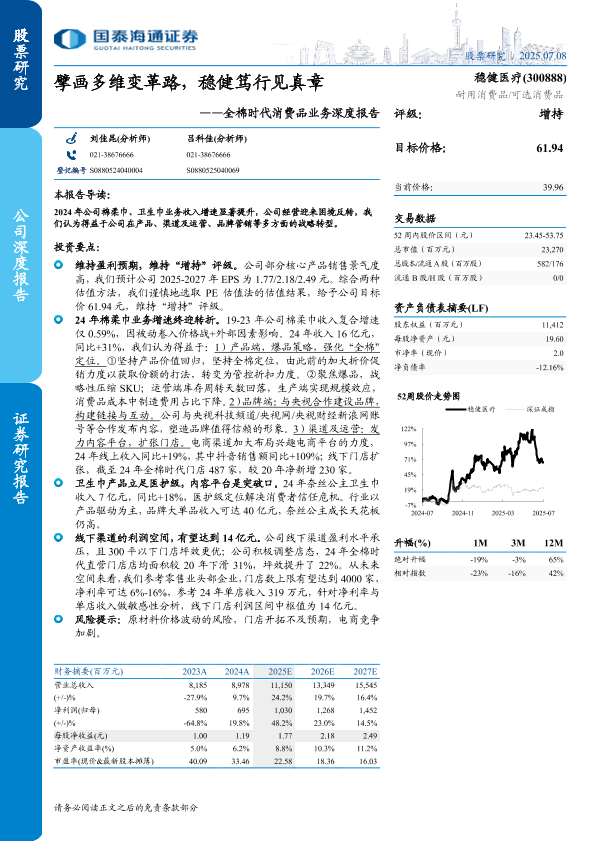 【国泰海通证券】【20250708】稳健医疗(300888)全棉时代消费品业务深度报告:擘画多维变革路,稳健笃行见真章-27页