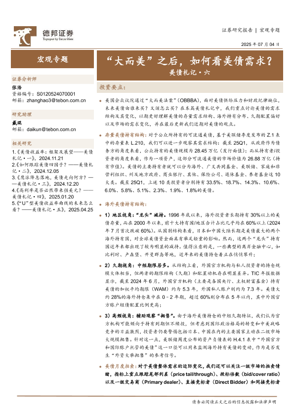 【德邦证券】【20250704】美债札记·六:“大而美”之后,如何看美债需求?-20页