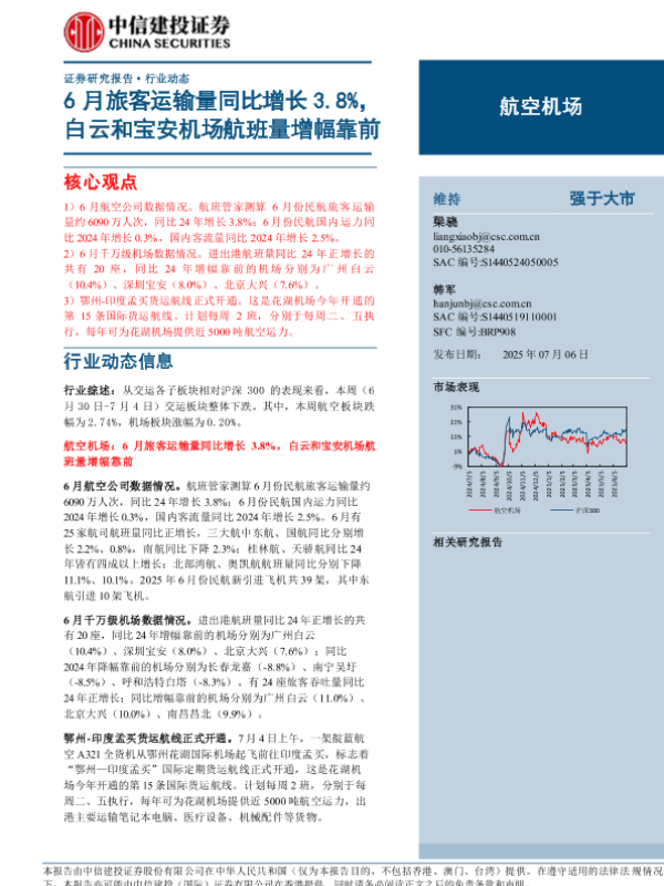 【中信建投证券】【20250706】6月旅客运输量同比增长3.8%,白云和宝安机场航班量增幅靠前-20页
