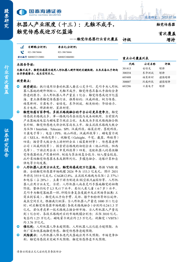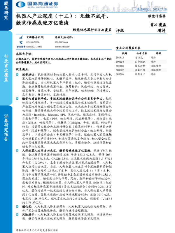 【国泰海通证券】【20250708】触觉传感器行业首次覆盖-机器人产业深度(十三):无触不成手,触觉传感或迎万亿蓝海-57页
