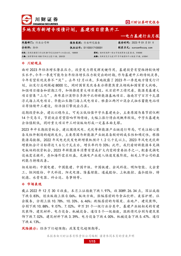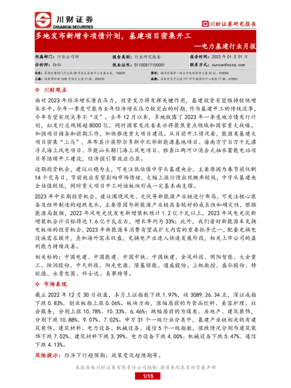 【川财证券】【20230101】电力基建行业月报:多地发布新增专项债计划,基建项目密集开工-15页