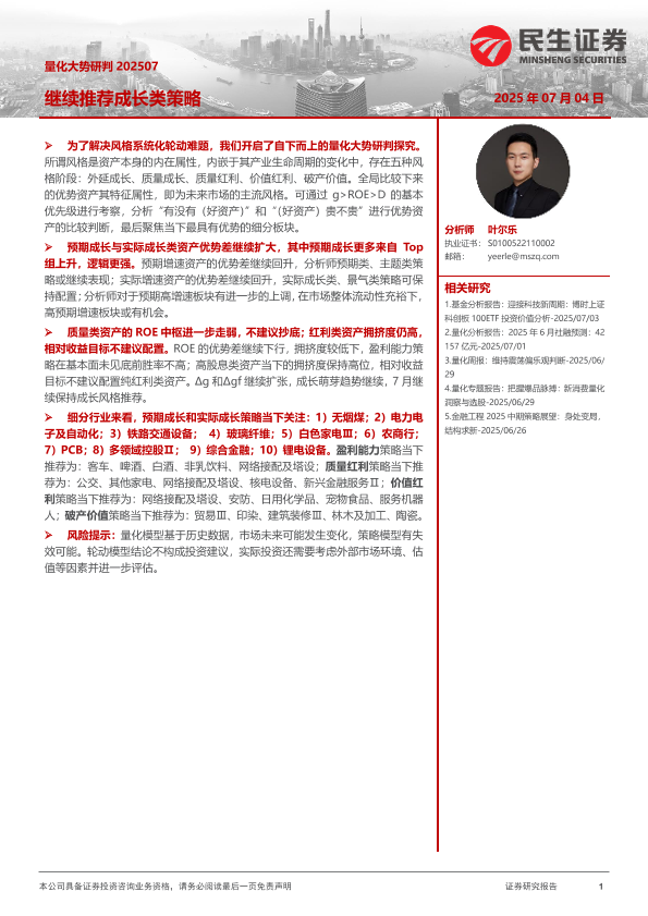 【民生证券】【20250704】量化大势研判:继续推荐成长类策略-19页