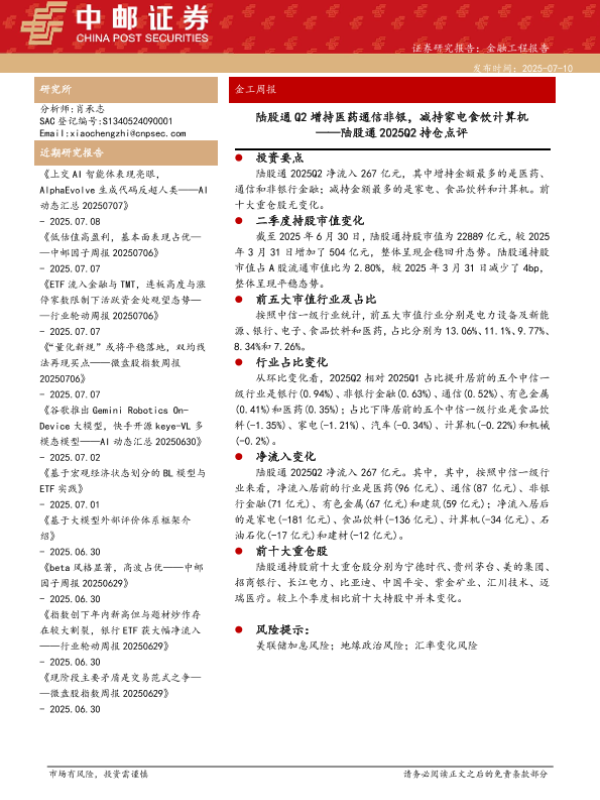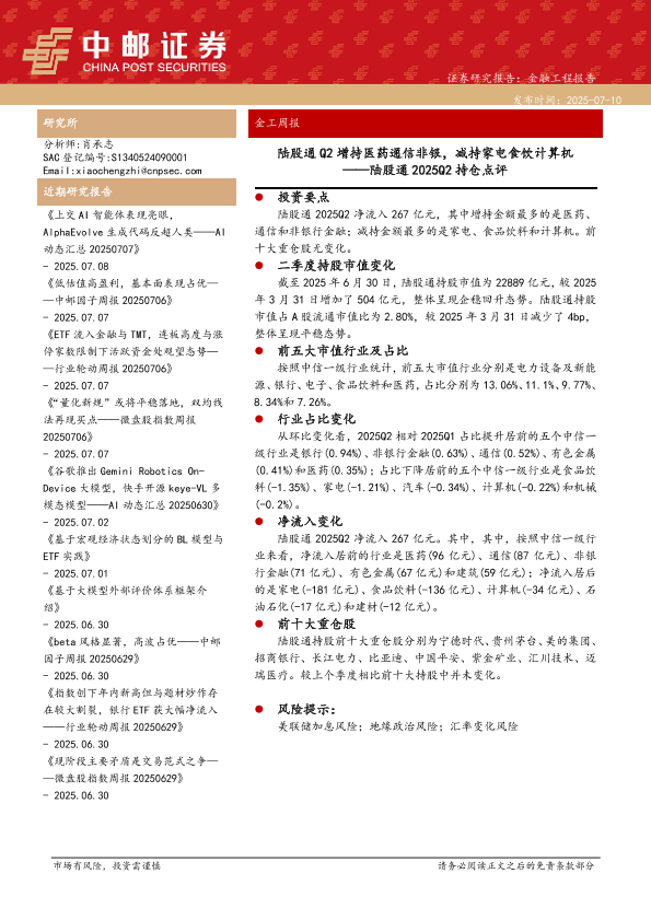 【中邮证券】【20250710】陆股通2025Q2持仓点评-12页