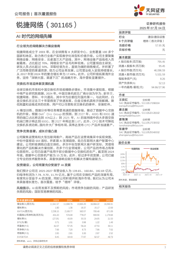【天风证券】【20250704】锐捷网络(301165)AI时代的网络先锋-24页