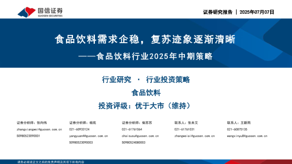 【国信证券】【20250707】食品饮料行业2025年中期策略:食品饮料需求企稳,复苏迹象逐渐清晰-38页