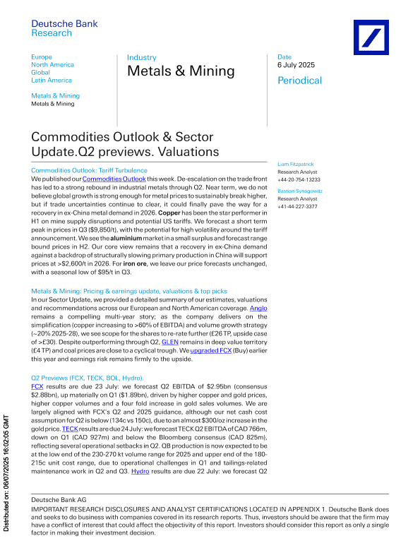 【Deutsche Bank Research】【20250706】Commodities Outlook & Sector Update.Q2 previews. Valuations-23页