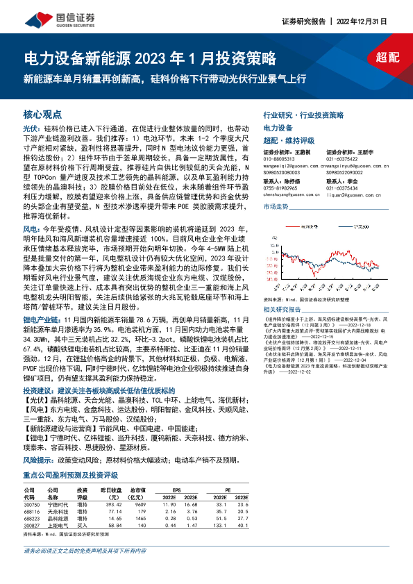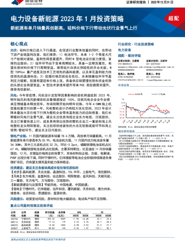 【国信证券】【20221231】电力设备新能源行业2023年1月投资策略:新能源车单月销量再创新高,硅料价格下行带动光伏行业景气上行-20页