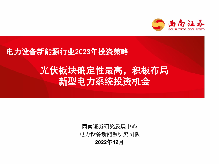 【西南证券】【20221231】电力设备新能源行业2023年投资策略:光伏板块确定性最高,积极布局新型电力系统投资机会-84页