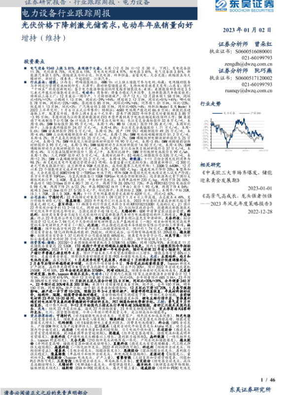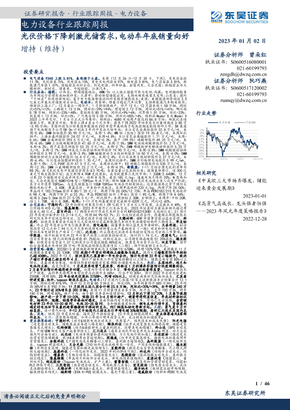 【东吴证券】【20230102】电力设备行业跟踪周报:光伏价格下降刺激光储需求,电动车年底销量向好-46页
