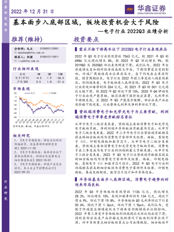 【华鑫证券】【20221231】电子行业2022Q3业绩分析:基本面步入底部区域,板块投资机会大于风险-39页
