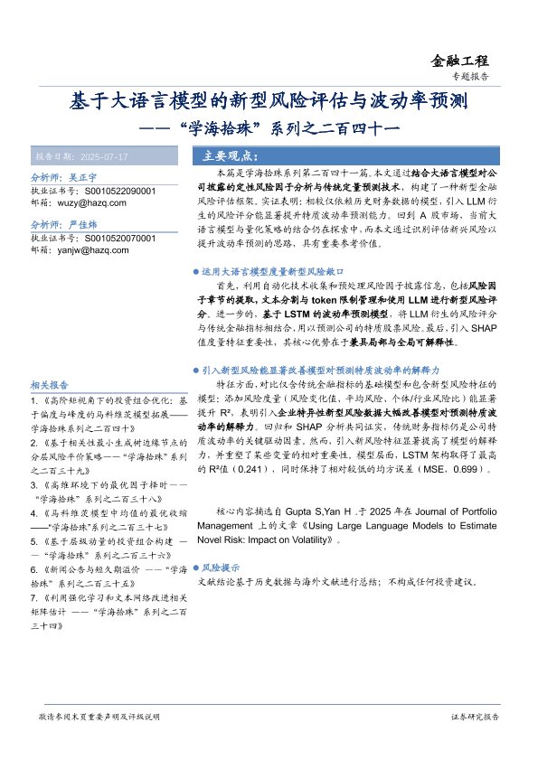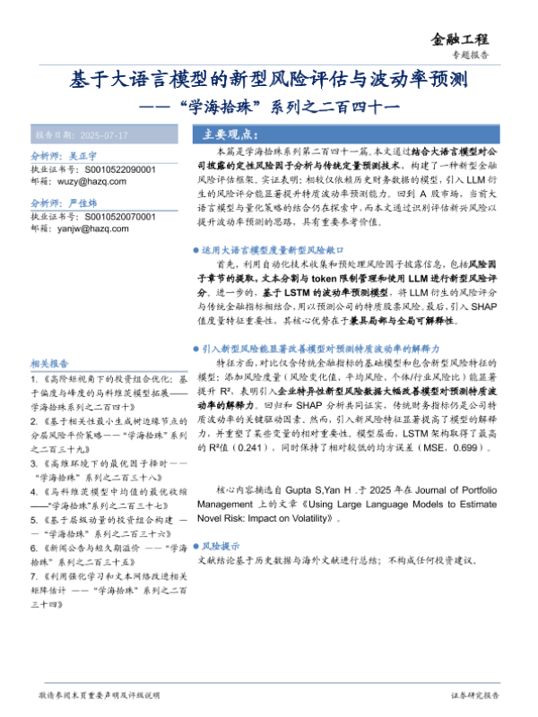 【华安证券】【20250717】基于大语言模型的新型风险评估与波动率预测-19页