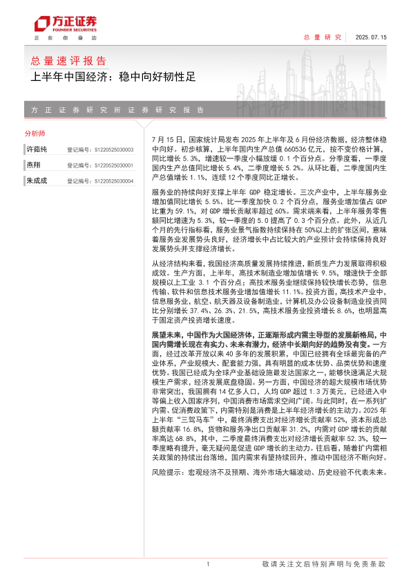 【方正证券】【20250715】上半年中国经济:稳中向好韧性足-12页