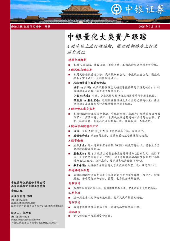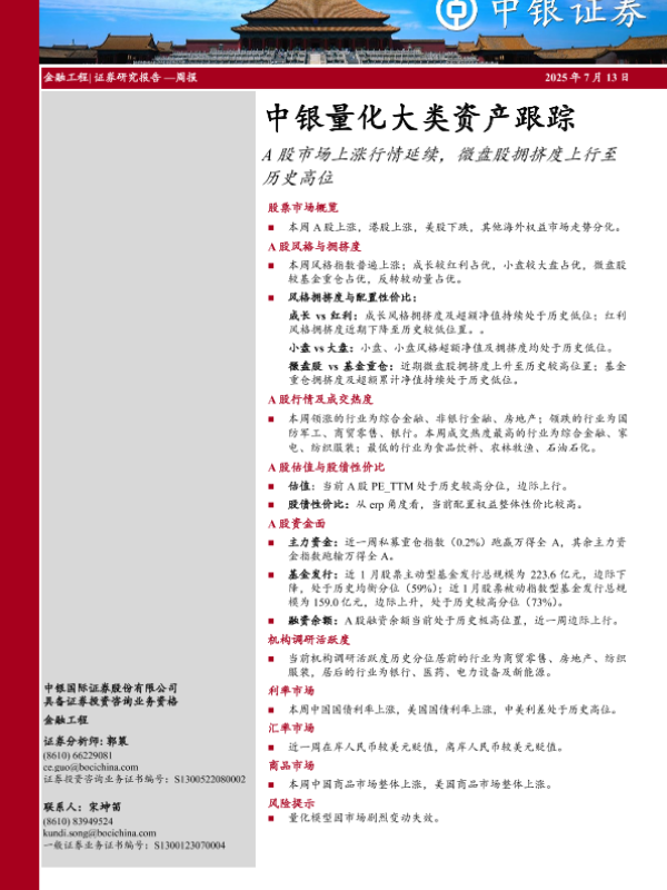 【中银证券】【20250713】中银量化大类资产跟踪:A股市场上涨行情延续,微盘股拥挤度上行至历史高位-31页