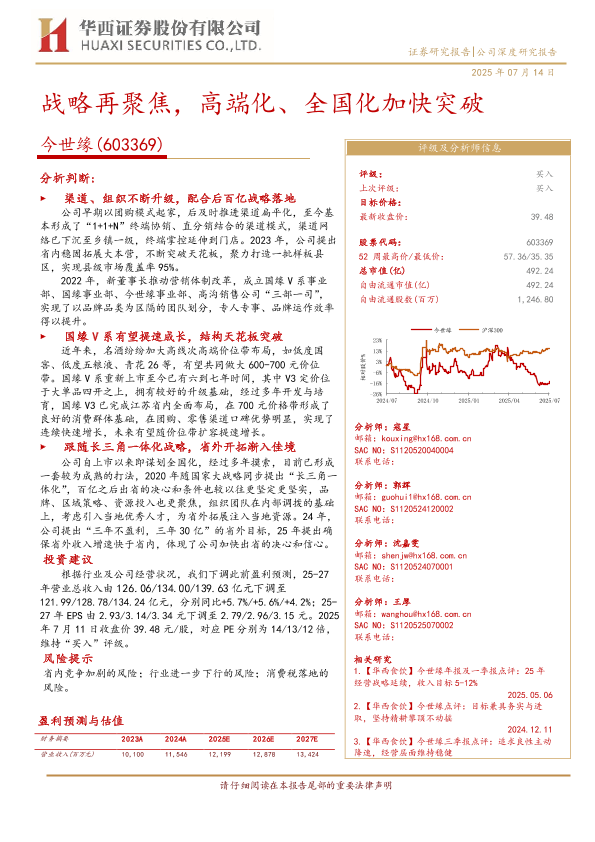 【华西证券】【20250714】今世缘(603369)战略再聚焦,高端化、全国化加快突破-30页