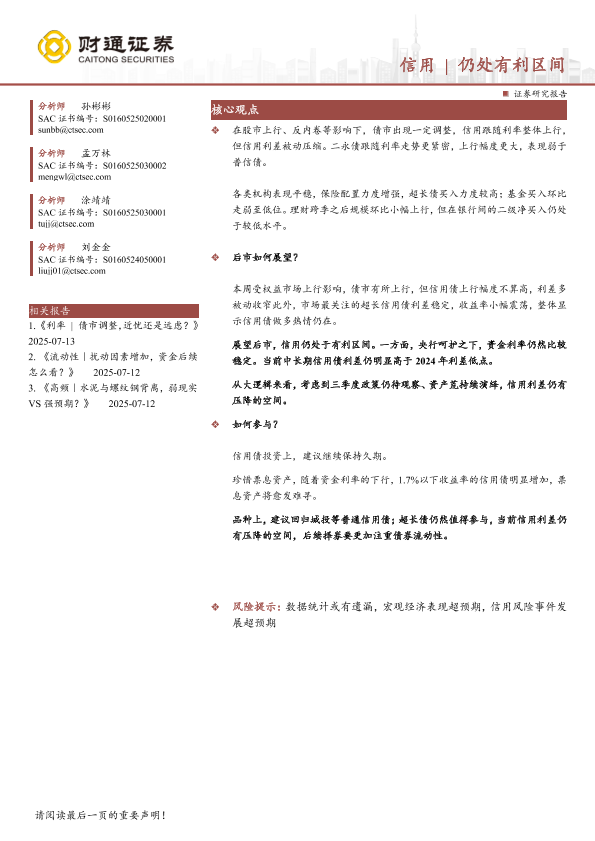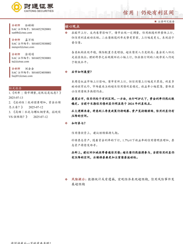 【财通证券】【20250713】信用|仍处有利区间-24页