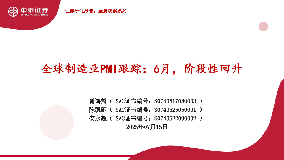 【中泰证券】【20250715】全球制造业PMI跟踪:6月,阶段性回升-31页