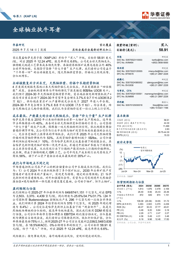 【华泰证券】【20250714】其他金属非金属新材料及加工行业:哈原工(KAP.LN)全球铀业执牛耳者-34页