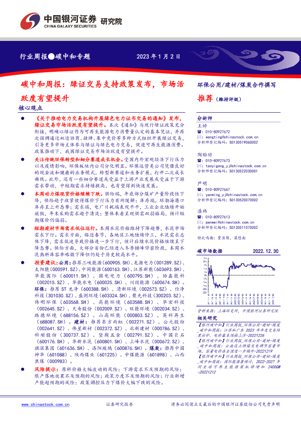 【银河证券】【20230102】碳中和周报:绿证交易支持政策发布,市场活跃度有望提升-21页