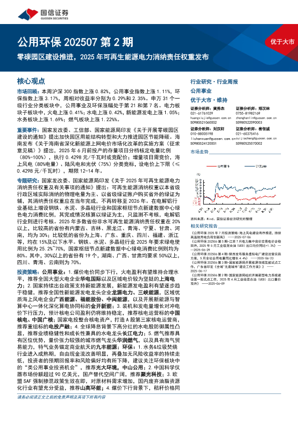 【国信证券】【20250714】公用环保行业202507第2期:零碳园区建设推进,2025年可再生能源电力消纳责任权重发布-29页