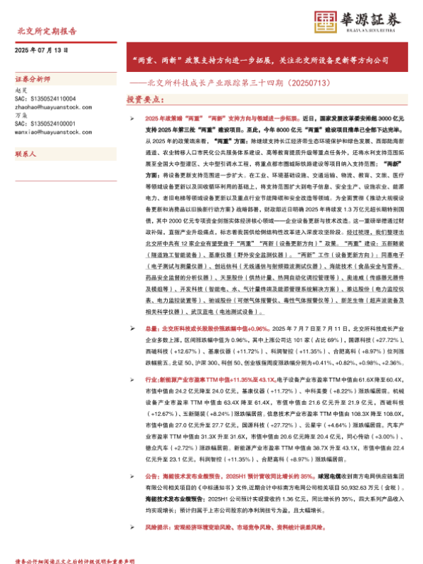 【华源证券】【20250713】北交所科技成长产业跟踪第三十四期:“两重、两新”政策支持方向进一步拓展,关注北交所设备更新等方向公司-19页